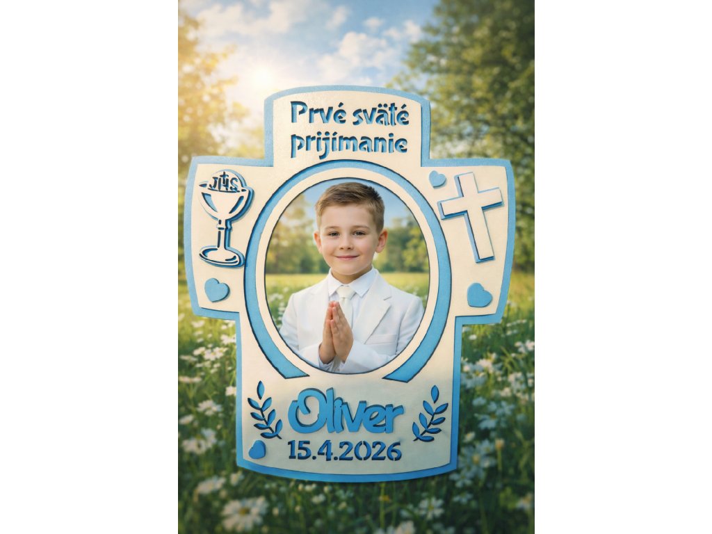 Rámik je personalizovaný menom dieťaťa a dátumom Prvého svätého prijímania, vďaka čomu sa stáva jedinečným darom s trvalou hodnotou. Skvelo sa hodí ako dar od rodičov, krstných rodičov či starých rodičov.