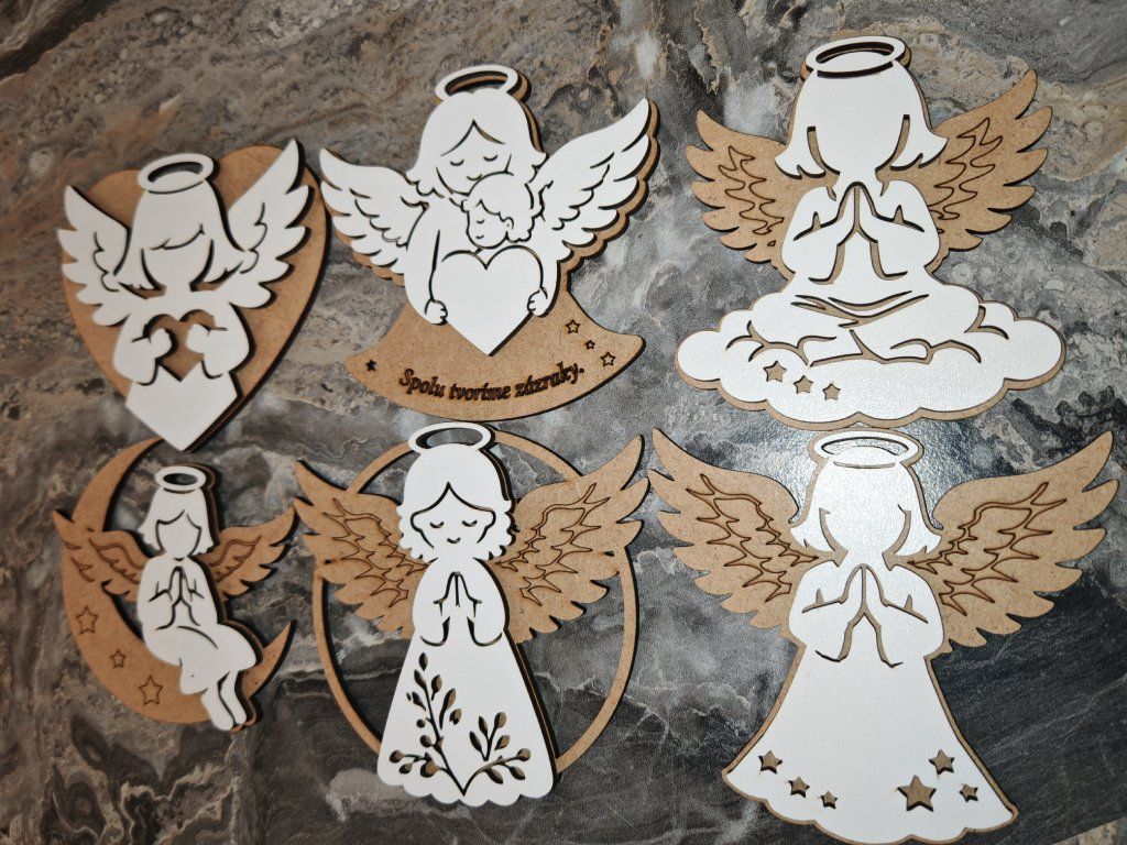 Prineste do svojho domova jemnosť, pokoj a symbol nádeje s touto jedinečnou sadou anjelikov. Každý anjelik je starostlivo vyrezávaný a kombinácia bledo hnedéj dosky s bielym detailom vytvára elegantný a nadčasový vzhľad.