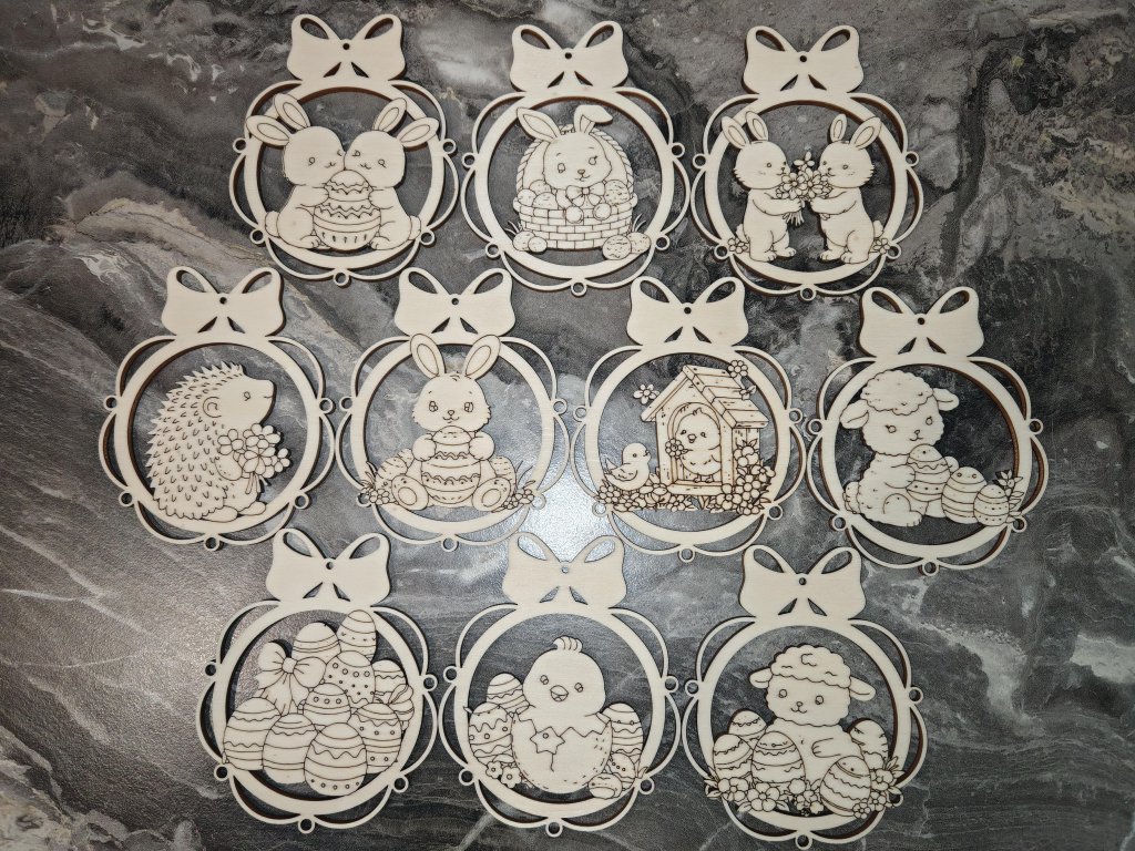 Každá ozdôbka je vyrobená z kvalitnej preglejky, jemne vypálená laserom a ponechaná v prírodnom prevedení, aby vynikla krása dreva. Hodí sa ako dekorácia na vetvičky, dvere, okno, do veľkonočnej výzdoby alebo ako milý darček pre niekoho blízkeho.