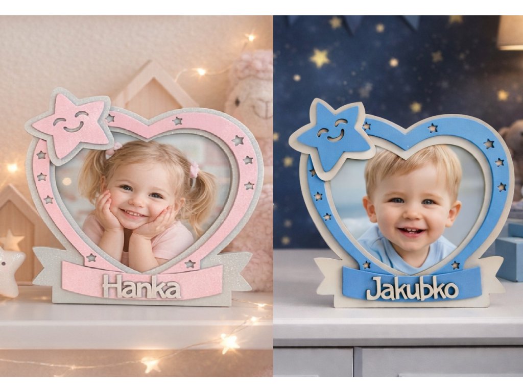 Detský fotorámik so srdiečkom a menom