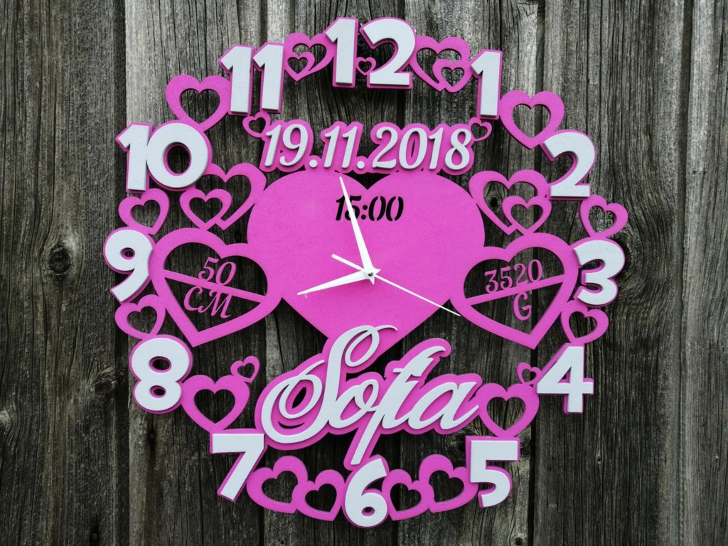Hodinky sú vybavené tichým strojčekom, ktorý neruší spánok ani pokojné chvíle dieťatka. Personalizované prvky s údajmi o narodení dodávajú hodinkám jedinečný a osobný charakter, vďaka čomu sa stávajú krásnou pamiatkou na celý život.